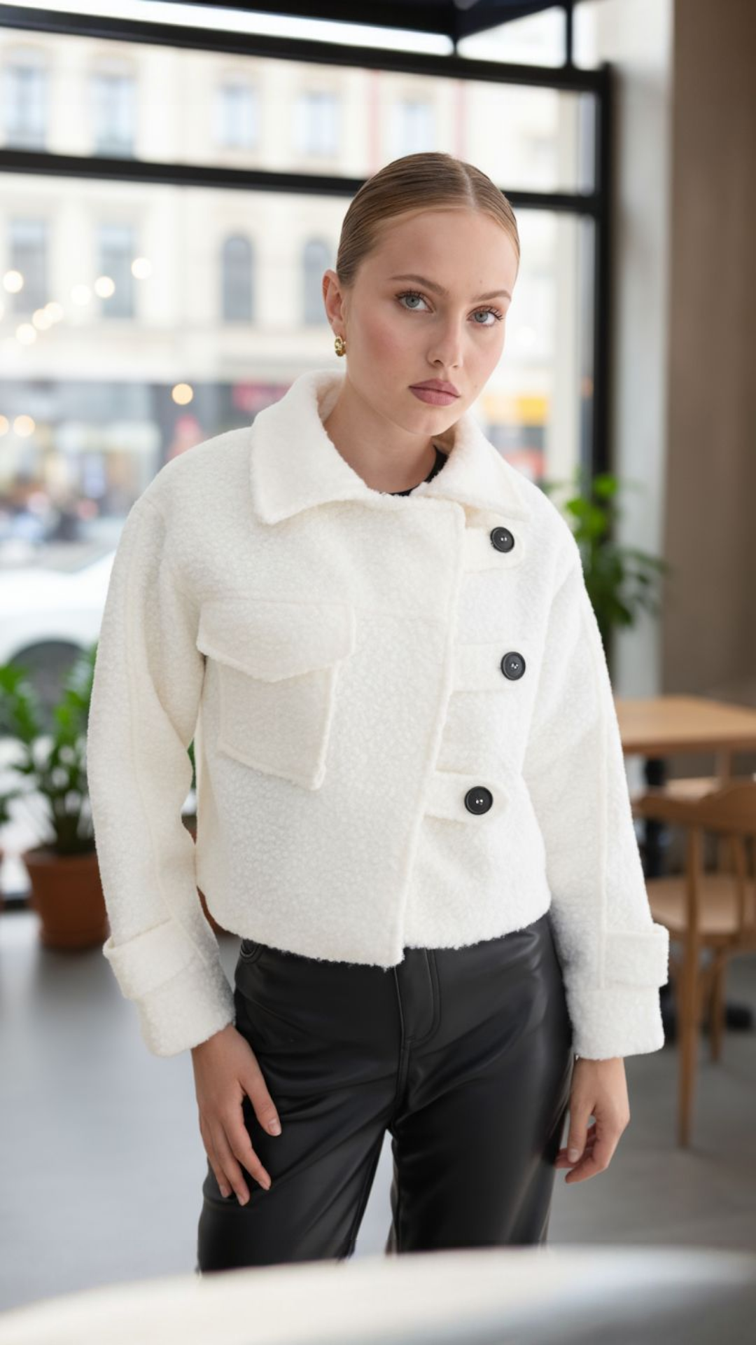 Bayan beyaz gündelik zarif sokak tarzı peluş kaban, yumuşacık dokusu ve modern tasarımıyla soğuk kış günlerinde hem şıklığı hem de konforu bir arada sunuyor. Beyazın zarif ve fresh havasıyla kombinlerinize ışıltı katarken, gündelik kullanımda spor ayakkabılarla rahat bir tarz, özel günlerde ise topuklu ayakkabılarla zarif bir görünüm elde etmenizi sağlar. Sokak stilini modern bir şıklıkla buluşturan bu kaban, gardırobunuzun en dikkat çekici parçalarından biri olacak.