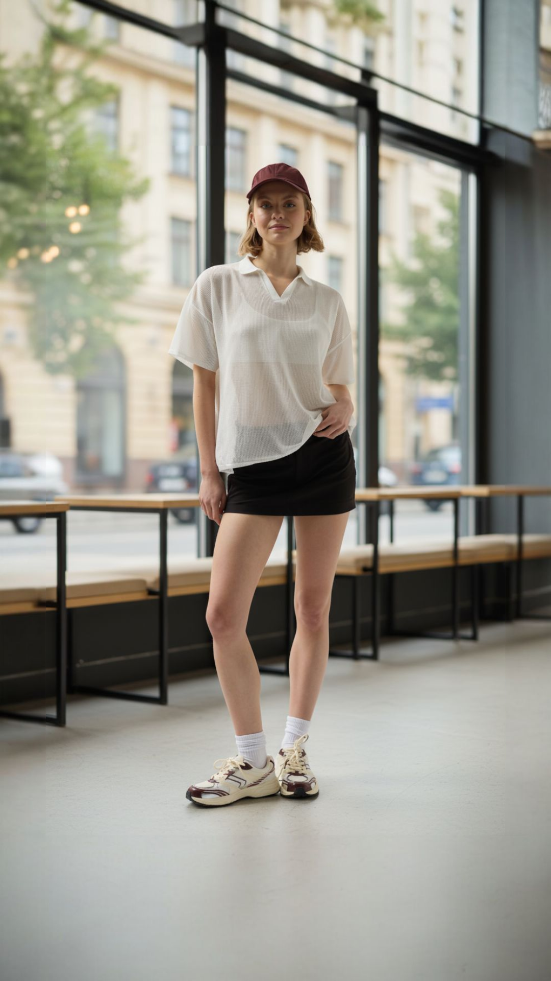 Zarif detaylarıyla dikkat çeken bayan polo yaka transparan t-shirt – ekru, modern şıklığı ve feminen tarzı bir araya getiriyor. Polo yaka tasarımı sayesinde klasik bir görünüm sunarken, transparan kumaşıyla cesur ve trend bir stil elde etmenizi sağlar. Günlük kombinlerde jean ve sneakerlarla spor şıklık yakalayabilir, özel davetlerde etek ve topuklu ayakkabılarla daha iddialı bir görünüm oluşturabilirsiniz. Ekru rengin asaletiyle her tarza kolayca uyum sağlayan bu t-shirt, gardırobunuzun en özel parçalarından biri olacak.