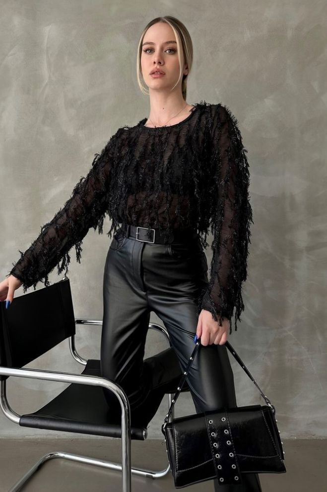 Günlük kombinlerde jean veya pantolonlarla spor-şık bir stil oluşturabilir, etek veya kumaş pantolonlarla özel davetlerde sofistike bir görünüm elde edebilirsiniz. Siyahın klasik ve asil tonu, bluzu her kombine uyumlu hale getirir.