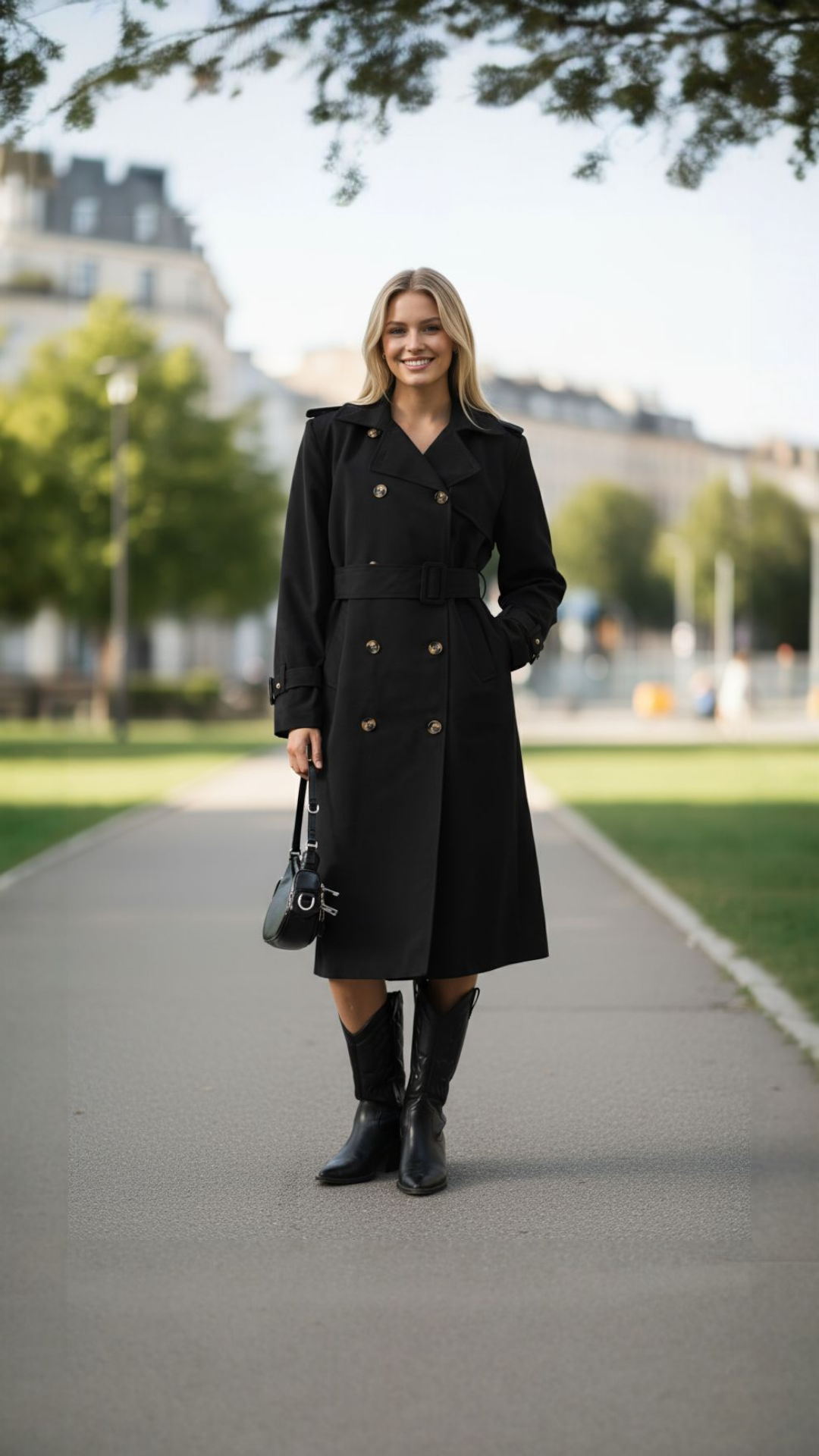 Zarif ve şık tasarımıyla öne çıkan bayan siyah zarif resmi düğmeli trençkot, klasik stilinizi modern dokunuşlarla tamamlıyor. Siyahın asil duruşunu düğmeli detaylarıyla buluşturan bu trençkot, hem günlük kullanımda hem de özel davetlerde rahatlıkla tercih edilebilir. Şık kesimi ve kaliteli materyaliyle gardırobunuzun zamansız parçalarından biri olacak.