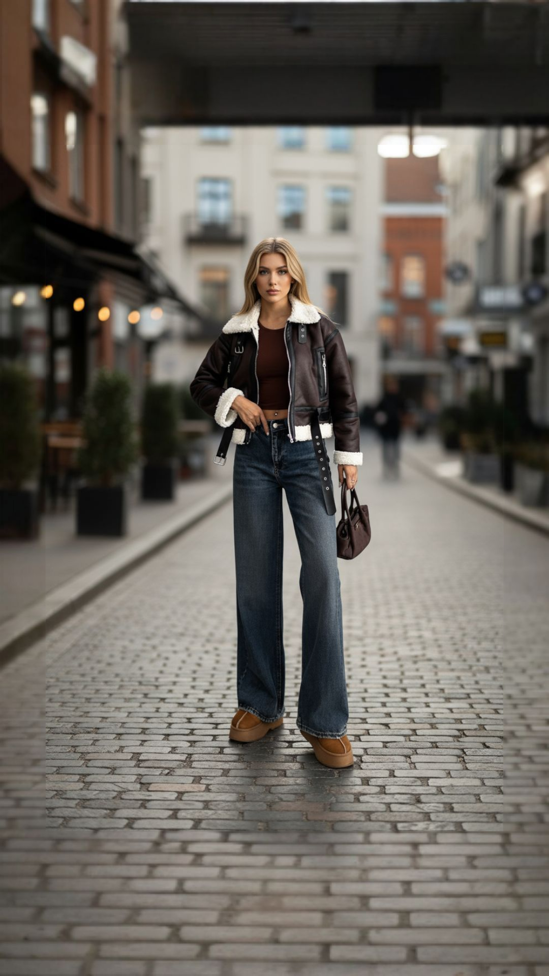 Stil sahibi görünüm ve sıcaklık bir arada! Kadın kürklü deri mont, oversize kesimi ve shearling astarıyla kış kombinlerinin vazgeçilmezi olacak.